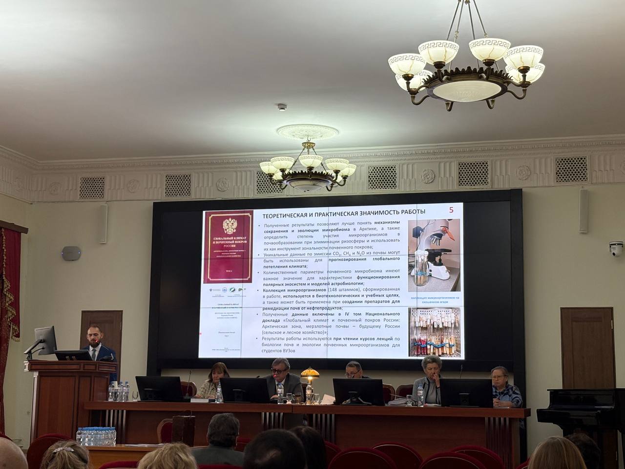 24 декабря в Почвенном институте им. В.В. Докучаева состоялась защита диссертации на соискание ученой степени доктора биологических наук сотрудника ФИЦ "Почвенный институт имени В.В. Докучаева" Дмитрия Алексеевича Никитина (с.н.с. лаборатооии биологии почв) по специальности 1.5.19 – почвоведение, биологические науки.
